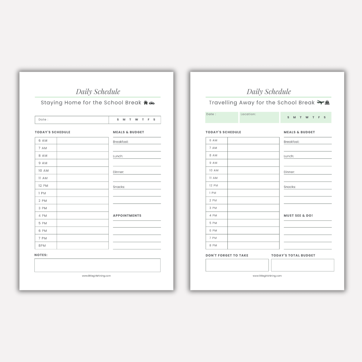 There are two versions of the daily schedule: one designed for those staying home and one for families who are travelling. If your break is a mix of both, just alternate between them as needed.