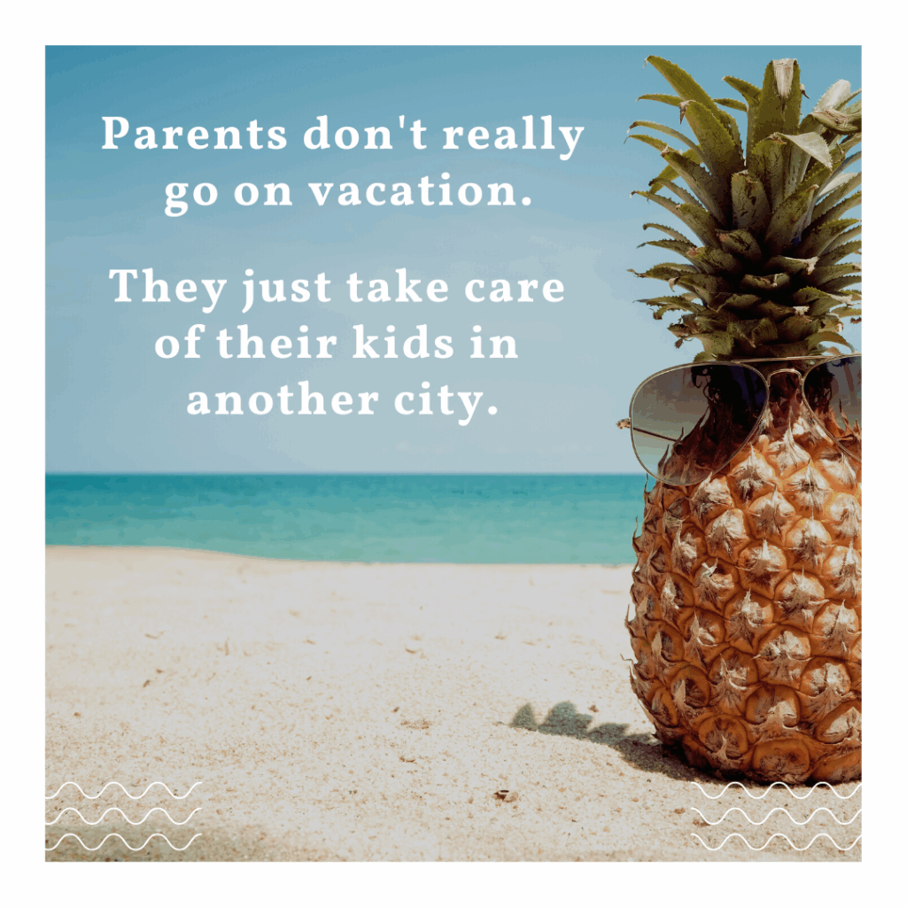 Below is one of my favourite memes. Not only is it funny, but it’s true. “Parents don’t really go on vacation. They just take care of their kids in a different city.”