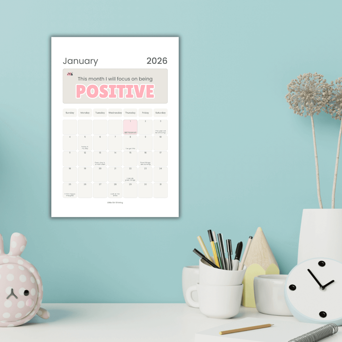 Printable 2026 Calendar for Little Girls – Inspirational & Confidence-Building