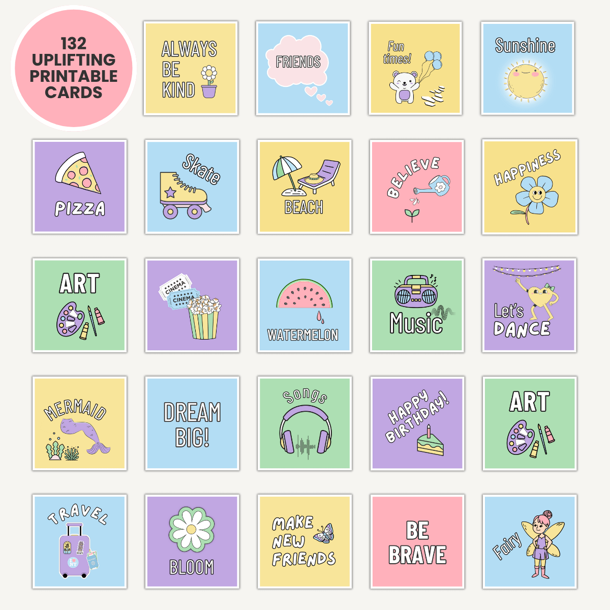Both PDFs are designed in A4 size and include a total of 132 cards in the full pack.